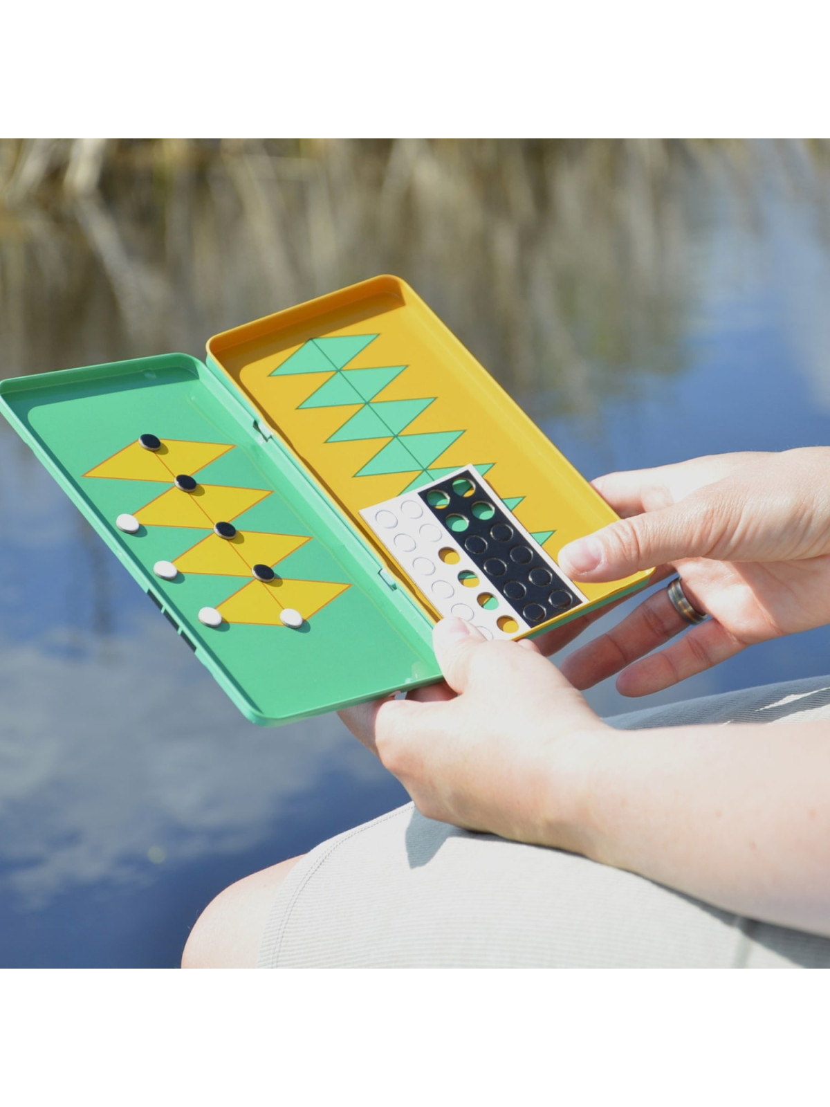 Walczące Węże to strategiczna gra planszowa dla dwóch graczy. Została spopularyzowana przez plemię Indian Zuni zamieszkujące tereny dzisiejszego Nowego Meksyku. Uważa się, że jest odmianą gry o nazwie Alquerque, która została wynaleziona na Bliskim Wschodzie i przypomina trochę warcaby. Plansza do gry składa się z par trójkątów. Celem gry jest usunięcie pionków przeciwnika. W opakowaniu znajdują się 2 plansze o różnym poziomie trudności (łatwiejsza plansza z 8 trójkątami oraz trudniejsza z 16 trójkątami). Sugerujemy zacząć od niższego poziomu 😉