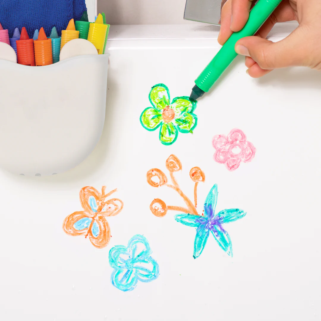 Czas na kąpiel pełną kolorów! Ten zestaw 12 kolorowych kredek do kąpieli w pięknej palecie tęczowych odcieni, ma idealny rozmiar dla małych rączek. Kredki zostały stworzone specjalnie do użytku na gładkich, mokrych powierzchniach, takich jak kafelki łazienkowe czy wanna. Są niezwykle łatwe do usunięcia – wystarczy przetrzeć je wilgotną szmatką, która znajduje się w zestawie. To doskonały sposób na to, by zamienić codzienną kąpiel w radosną sesję artystyczną.
