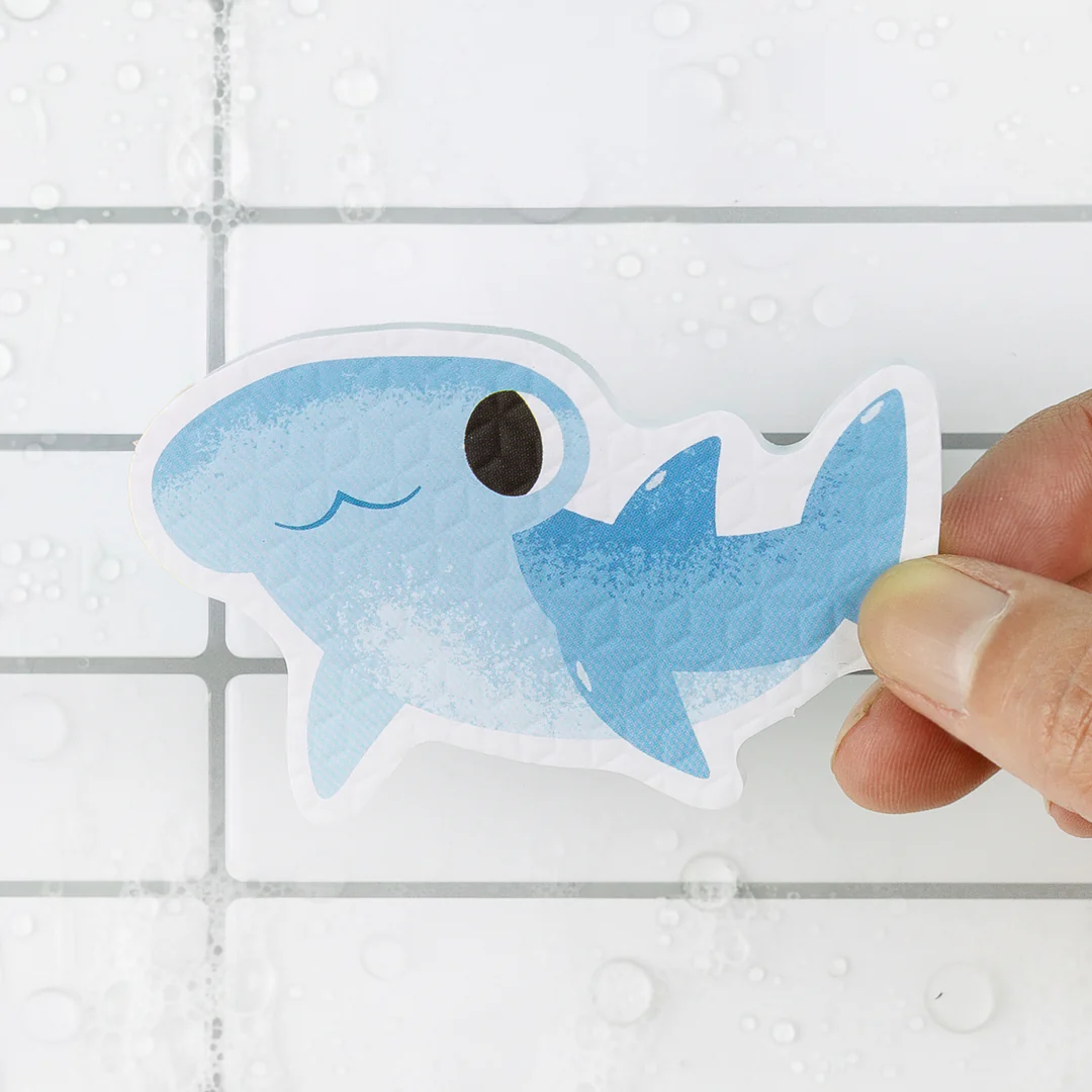 - 17 piankowych naklejek – kolorowe kształty wykonane z pianki EVA, które po namoczeniu przywierają do powierzchni wanny i kafelków, pozwalając na tworzenie nieskończonych opowieści.