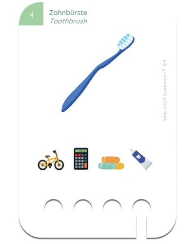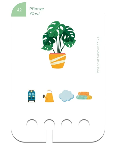 Karty WiemTo wspierają rozwój poznawczy i językowy, rozwijają pamięć, logiczne myślenie i koncentrację, ćwiczą motorykę małą dzięki pracy z drewnianym patyczkiem dołączonym do drewnianego pudełka WiemTo. Karty są dwustronnie zadrukowane w języku niemieckim i angielskim, co umożliwia jednoczesne rozwijanie umiejętności językowych. Zabawa kartami jest intuicyjna, nie wymaga umiejętności czytania i znajomości języka niemieckiego i angielskiego.