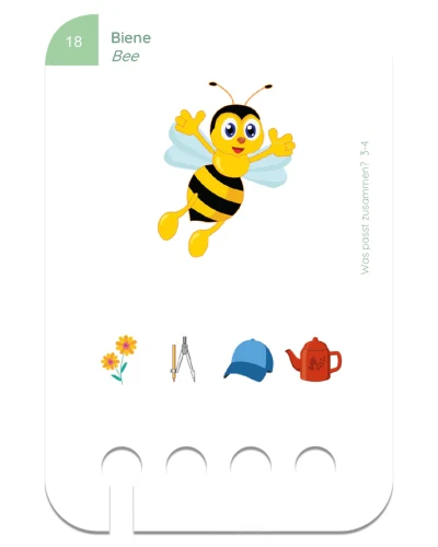 Zestaw Co Pasuje do Obrazka zawiera 48 starannie dopasowanych zadań na 24 dwustronnych kartach. Zestaw ten rozwija umiejętności poznawcze, spostrzegawczość, koncentrację oraz umiejętność logicznego myślenia poprzez identyfikację obrazków i powiązanie ich ze sobą. Każda kolejna karta wprowadza bardziej zaawansowane zadania, dostosowując poziom trudności do postępów dziecka.