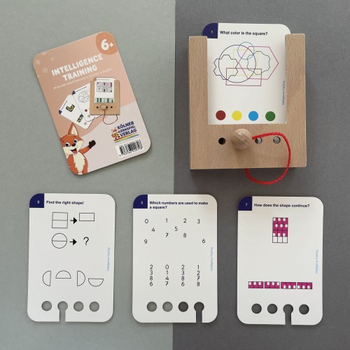 Zestaw Startowy WiemTo zawiera pudełko do autokorekty WiemTo i zestaw kart Trening Inteligencji – 24 starannie dopasowane zadania na 24 dwustronnych kartach.