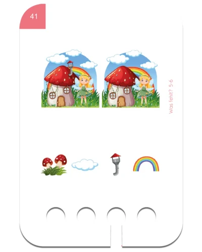 Zestaw Znajdź Różnicę zawiera 48 starannie dopasowanych zadań na 24 kartach. Zestaw ten rozwija spostrzegawczość, koncentrację oraz umiejętność logicznego myślenia poprzez identyfikację brakujących elementów na obrazkach.