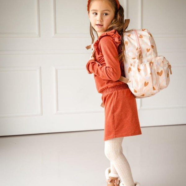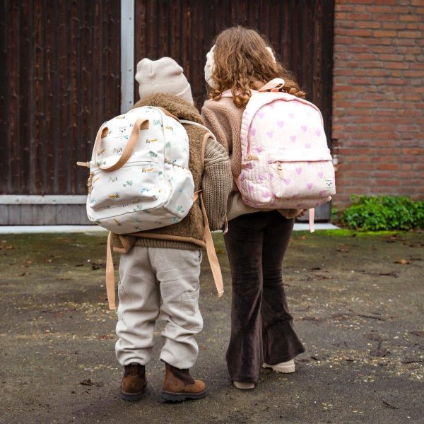 Ten uroczy pudrowo różowy plecak z nadrukiem w serduszka to doskonały wybór na każdą przygodę! Należący do czarującej kolekcji holenderskiej marki KIDZROOM, plecak szybko stanie