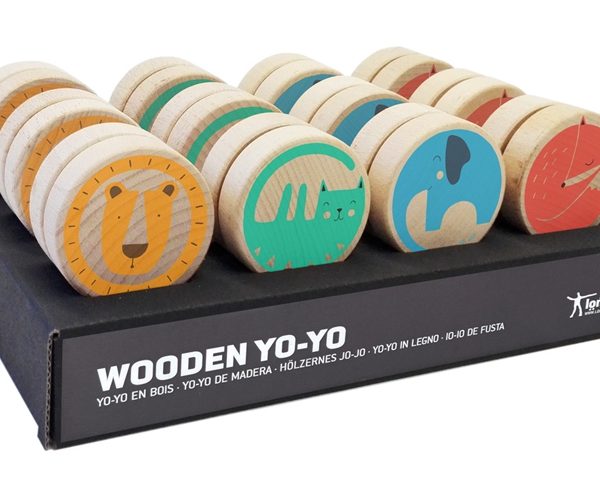 Jojo z drewna bukowego dostępne w 4 różnych wzorach.Jojo zdobią oryginalne, minimalistyczne grafiki zwierząt.Zabawka pomaga ćwiczyć koordynację rąk. wiek dziecka