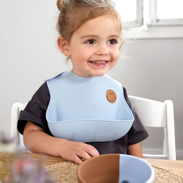 Praktyczny wodoodporny i elastyczny śliniaczek wykonany w 100% z silikonu i ma zadanie zabezpieczyć ubranko dziecka przed zabrudzeniem oraz przemoczeniem