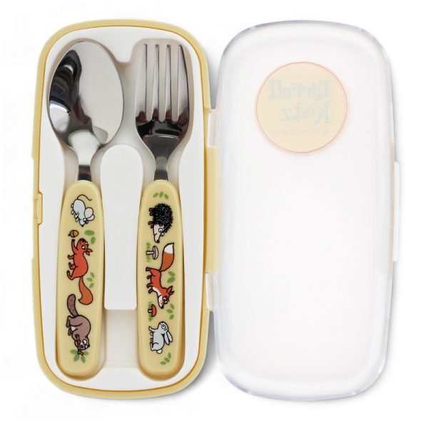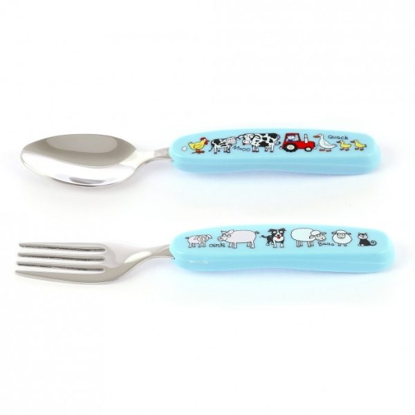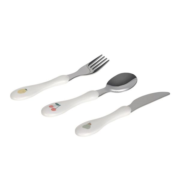 Zestaw zawiera widelec, łyżkę oraz nóż. Sztućce zostały zaprojektowany specjalnie dla najmłodszych. Charakteryzują się miękkimi, przyczepnymi silikonowymi uchwytami, które idealnie