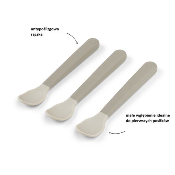 Elastyczna łyżeczka z miękkiego silikonu idealnie nadaje się do nauki jedzenia. Elastyczność materiału pozwala na nadawanie łyżeczce różnych kształtów, co