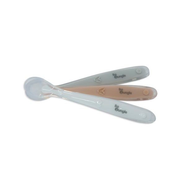 Zestaw dwóch ergonomicznych pierwszych łyżeczek francuskiej marki BEABA. Wykonane zostały z ultraelastycznego silikonu, w pełni bezpiecznego dla delikatnych dziąseł i