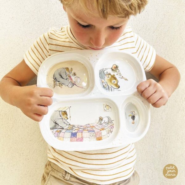Talerz francuskiej marki Petit Jour Paris. 4 przegródki w tacy, talerzu, dla malucha rozpoczynającego przygodę z samodzielnymi posiłkami! Bezpieczne, ekologiczne,