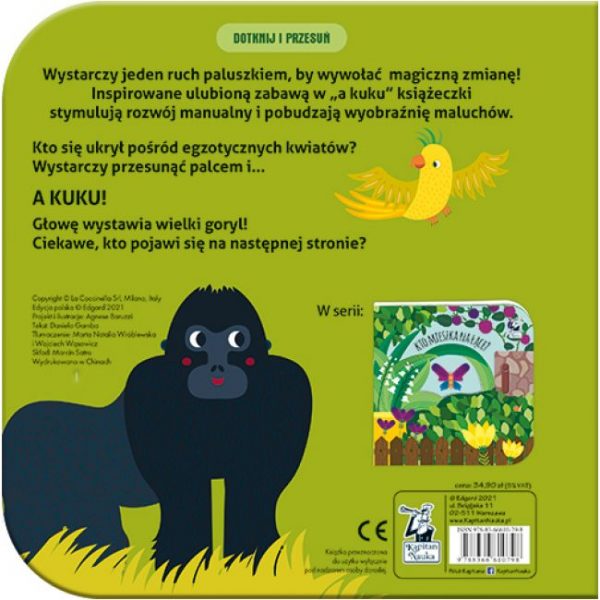 Dotknij i przesuń. Kto mieszka w dżungli? to inspirowana zabawą w „a kuku” książka dla maluchów, która ukazuje zaskakujące zmiany w