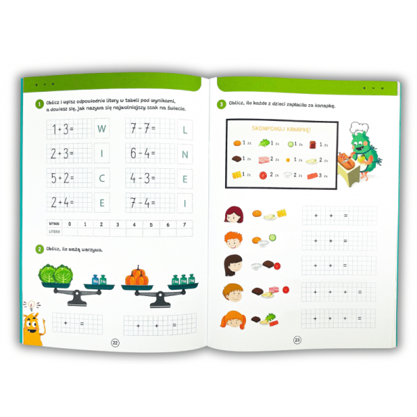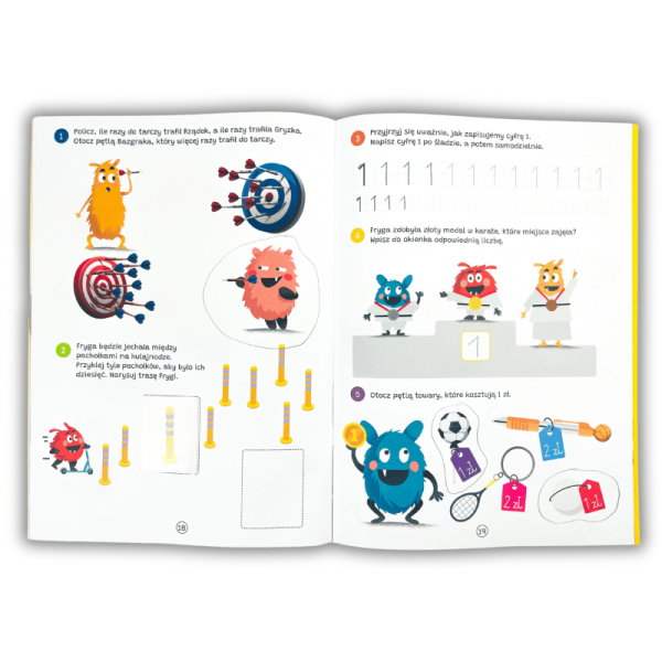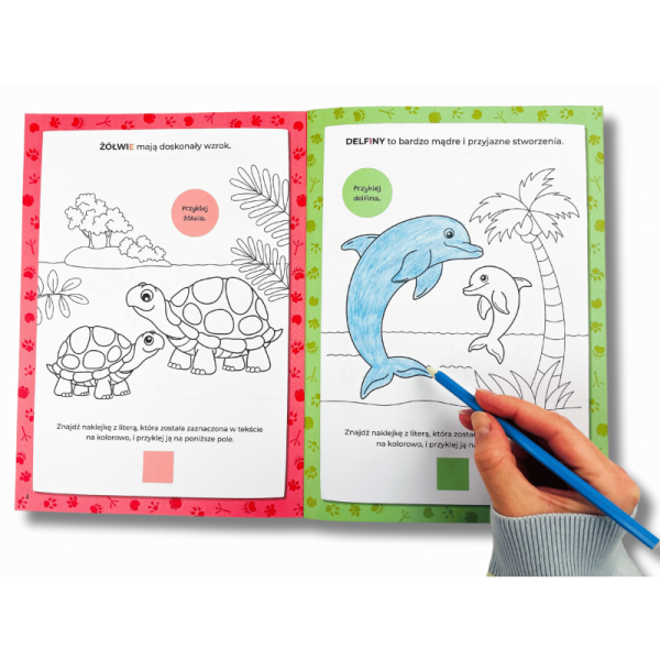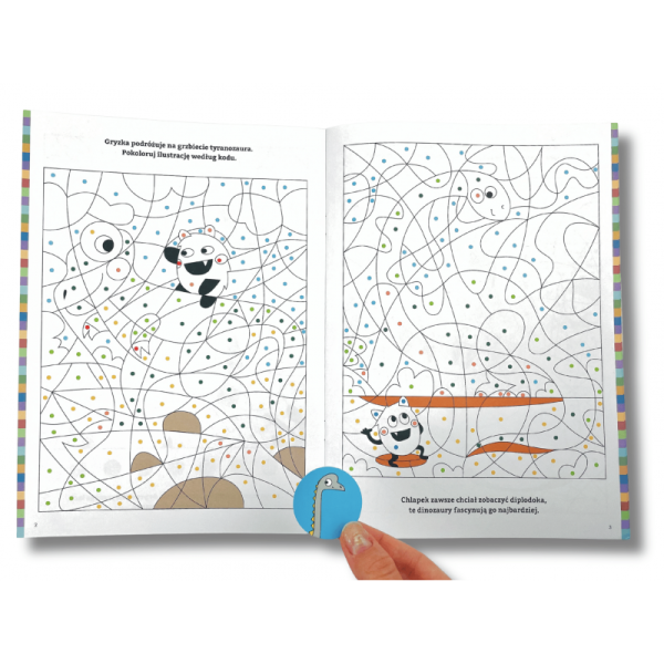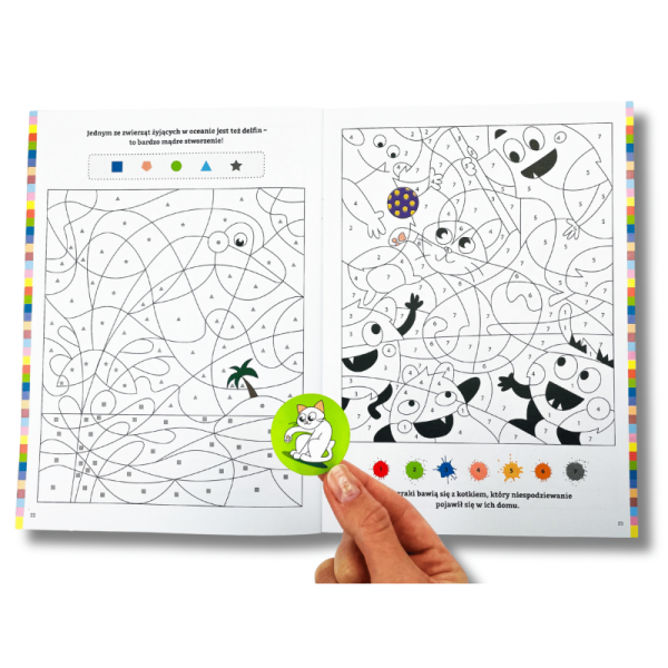 Kreatywny zeszyt dla najmłodszych. Krótka historyjka przedstawiona na początku książeczki stanowi punkt wyjścia do zabaw zawartych na dalszych stronach. Zeszyt