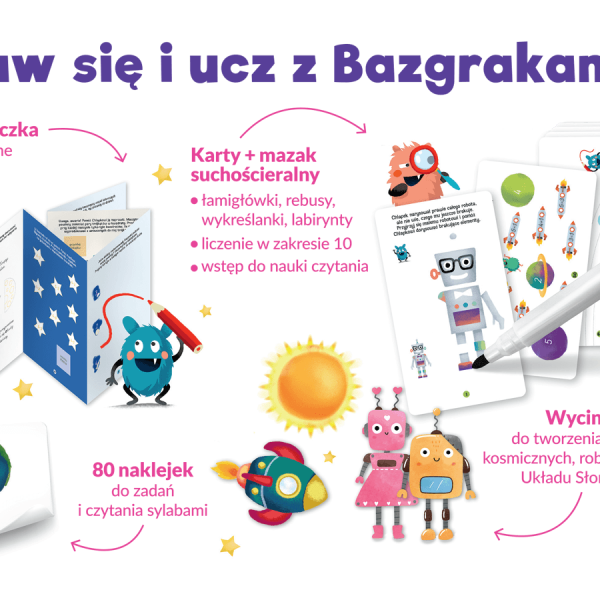 Poznaj zestaw inspirujących zabaw, które rozbudzają ciekawość świata, poszerzają słownictwo oraz rozwijają liczenie oraz myślenie logiczne u przedszkolaków. Teczka edukacyjna