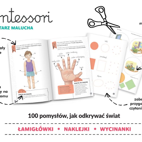 Montessori. Ćwiczenia malucha (2–3 lat) to bogato ilustrowana książka pełna zabaw i łamigłówek przygotowanych w duchu pedagogiki Montessori. Ćwiczenia dla