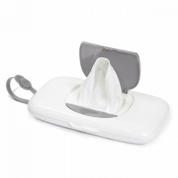 Pojemnik na mokre chusteczki Silk White od bébé-jou. Wygodny pojemnik do przechowywania mokrych chusteczek, zapobiega ich wysychaniu. Łatwy system click
