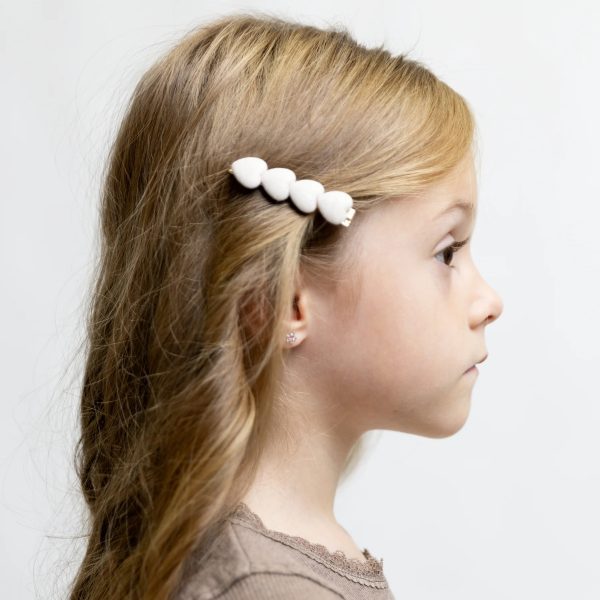 Te czarujące spinki do włosów dodają błyszczących akcentów do każdej fryzury. Praktyczne akcesoria ozdobione delikatnymi sercami pokrytymi tkaniną nadają ponadczasowy,