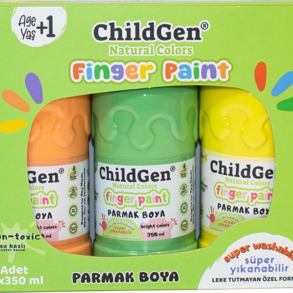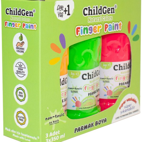 ChildGen – Super Zmywalne Farby do Malowania Palcami Zestaw zawiera neonowe farby w kolorze: Pomarańczowym, Zielonym, Różowym. (3x350ml) Odkryj żywe i intensywne