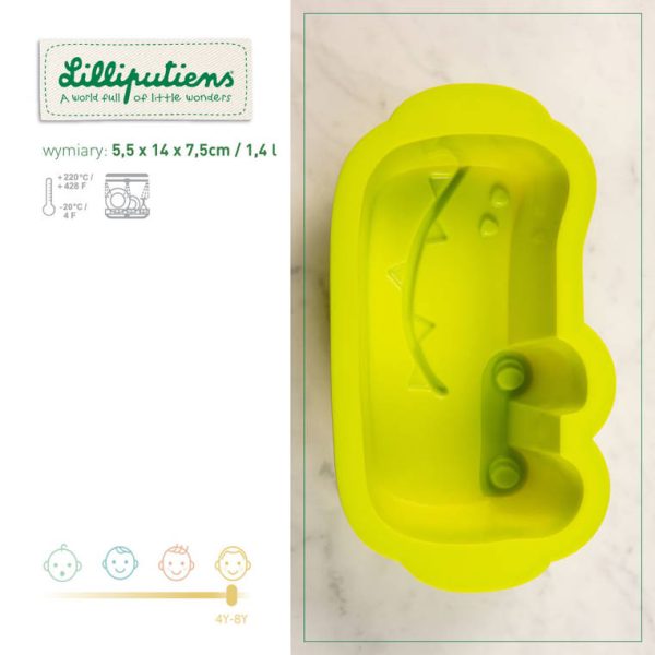 Forma do pieczenia z kolekcji Krokodyl Anatol belgijskiej marki Lilliputiens to idealne pierwsze narzędzie kuchenne małego miłośnika gotowania. Ma seledynowy