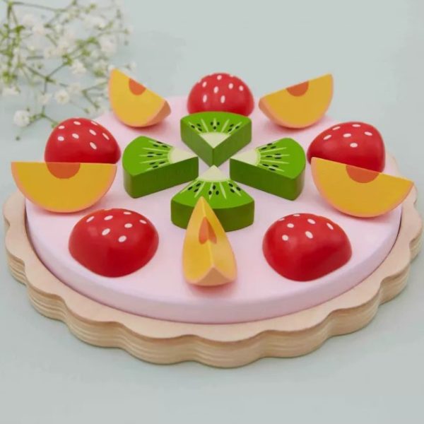 Drewniana skrzynka ze świeżymi owocami prosto z rynku, zawiera: banana, jabłko, truskawkę, gruszkę, arbuza, mandarynkę, śliwkę oraz kiwi! Świetny dodatek