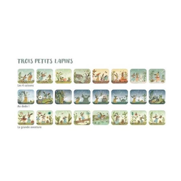 Lampka projektor z serii TROIS PETITS LAPINS Zanurz się w trzech różnych światach dzięki flagowemu produktowi Moulin Roty. Odkryj trzy