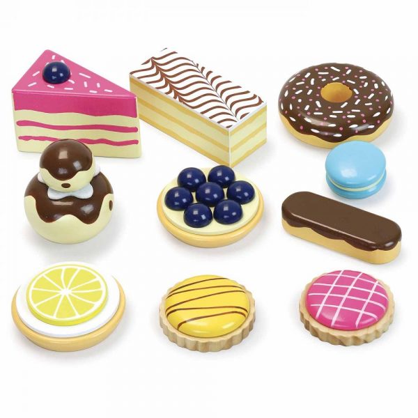 Zestaw 10 niezwykle smakowitych, kolorowych ciasteczek do zabawy z cukiernię lub picie herbatki:) Ciasteczka znajdują się na bardzo wygodnej paterze