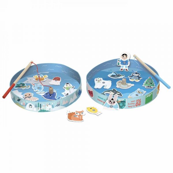 Gra zręcznościowa Łowienie ryb Iceland zaprojektowana przez Michelle Carlslund. Gra magnetyczna dla dwóch graczy, wykonana z wysokiej jakości drewna, w