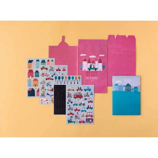 Naklejki wielokrotnego użytku z tłem, MY CITY – Moje Miasto Zdejmowalne naklejki to bardzo lubiana zabawa, która wesprze u Twojego malucha koordynację ręka