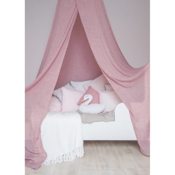 Bajeczny baldachim w pastelowej kolorystyce to idealny dodatek dekoracyjny wyposażenia dziecięcych wnętrz. Pastelowy kolor idealnie wpasuje się w kolorystykę pokoju. Zamontowany