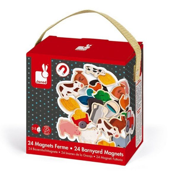 Zestaw drewnianych magnesów Farma francuskiej marki Janod to wspaniały prezent dla kilkulatka. Zestaw zawiera 24 magnesy o wielkości około 5