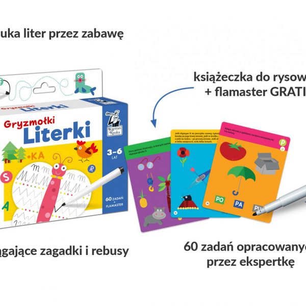 „Gryzmołki. Angielski” (3–6 lat) to zestaw 60 kreatywnych, bogato ilustrowanych zabaw dla przedszkolaków, dzięki którym bez wysiłku przyswoją angielskie słówka.