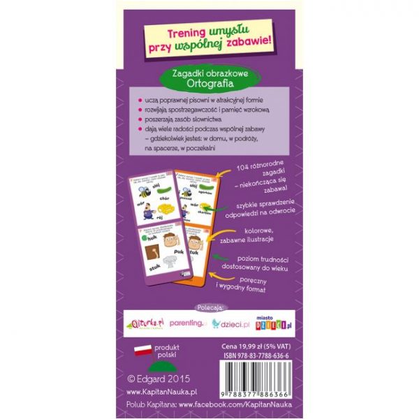 Ortografia 6-9 lat. Zagadki obrazkowe to niezbędnik dla uczniów pierwszych klas szkół podstawowych. Ilustrowana książeczka pomoże zrozumieć i zapamiętać poprawną pisownię