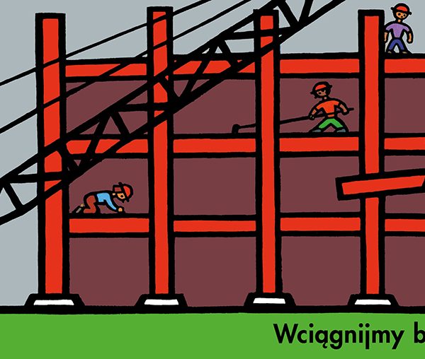 Pełna kolorów kartonowa książeczka dla maluchów zafascynowanych koparkami, dźwigami i wszelkimi maszynami budowlanymi. Witajcie na budowie! Czas wziąć się do