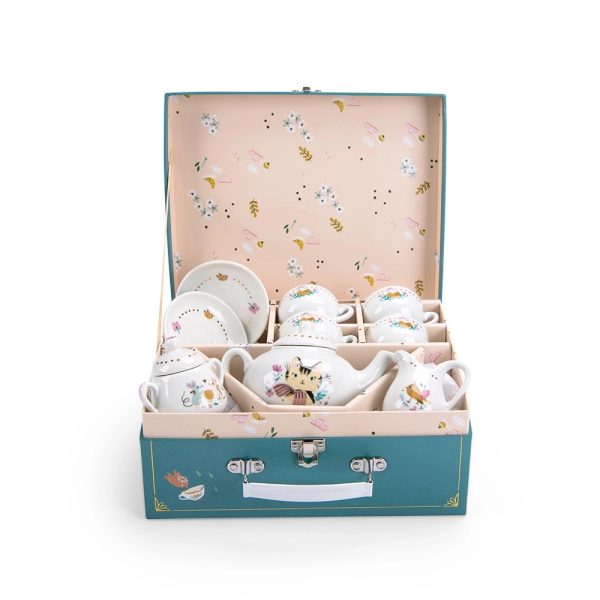 Zestaw naczyń ceramicznych z kolekcji Les Parisiennes z delikatnymi ilustracjami autorstwa Lucille Michieli. Zapakowany w pięknie zdobioną walizkę. Idealny do