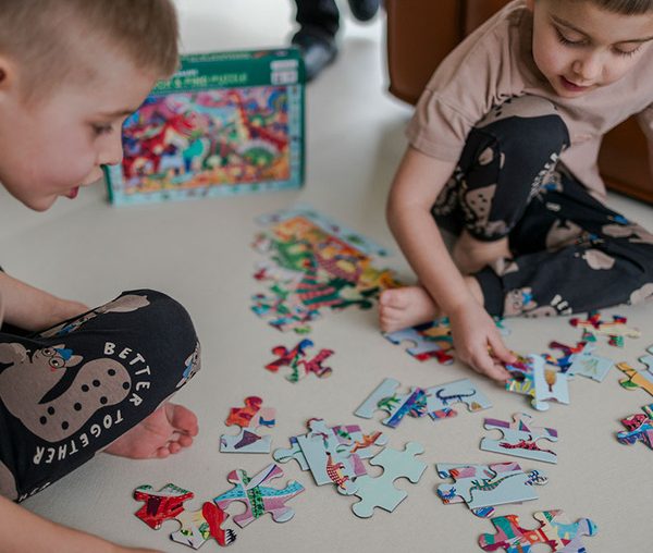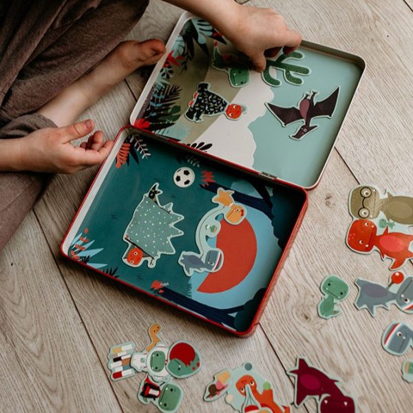 Puzzle Potężne dinozaury amerykańskiej marki MUDPUPPY składają się ze 100 poręcznych elementów, po ułożeniu przedstawiających kilkadziesiąt gatunków prehistorycznych stworzeń wraz