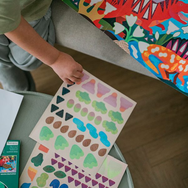 Zestaw kreatywny z naklejkami holograficznymi Kraina dinozaurów amerykańskiej marki MUDPUPPY to świetna angażująca, rozwijająca i uspokajająca zabawka dla maluchów. W