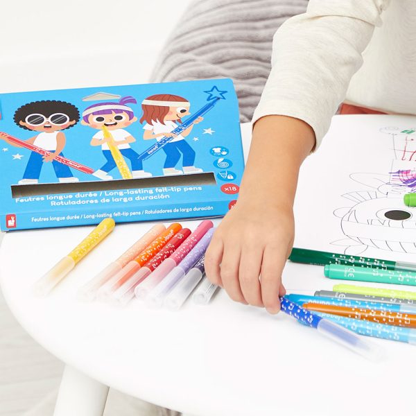 Zestaw 10 flamastrów pędzelkowych francuskiej marki JANOD w pięknych, intensywnych kolorach. Są poręczne, z okrągłymi uchwytami. Mają mięciutką filcową końcówkę,