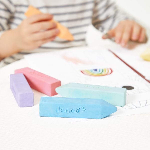 Zestaw 6 kred chodnikowych francuskiej marki JANOD w pięknych, intensywnych kolorach. Są grube, poręczne, z prostokątnymi uchwytami o miękkich brzegach.