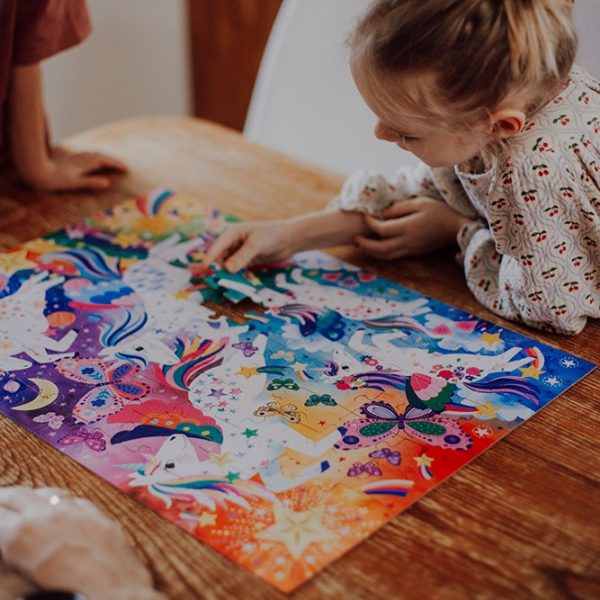 Puzzle Magiczne jednorożce amerykańskiej marki MUDPUPPY składają się ze 100 poręcznych elementów, po ułożeniu przedstawiających baśniowy, pełen blasku i bajecznie