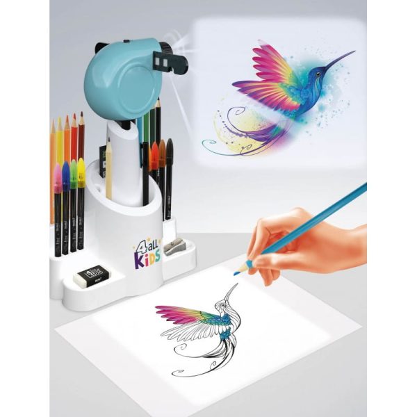 Kreatywny świat stoi otworem przed małymi artystami, dzięki projektorowi do kopiowania i rysowania obrazków. Wyświetl czarno-biały obrazek na kartce papieru,