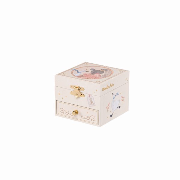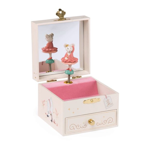Drewniana pozytywka na biżuterię Les Parisiennes Moulin Roty. Pozytywka z wirującą dziewczynką trzymającą deskorolkę w ręce. Miękki, ale radosny dźwięk