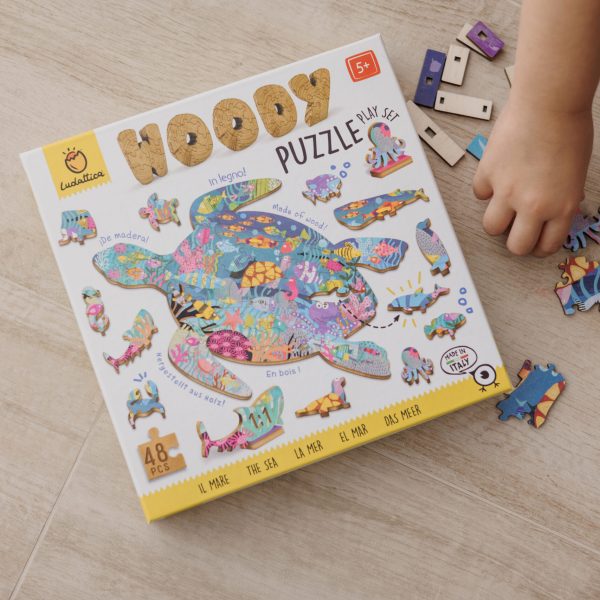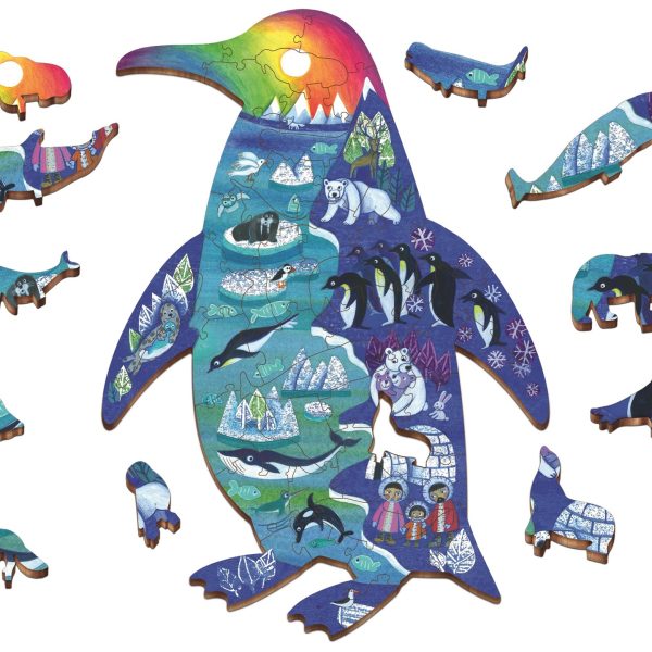 Pięknie ilustrowana DREWNIANA układanka o wyjątkowym kształcie. 48 DREWNIANYCH ELEMENTÓW, w tym 12 FIGUREK FORMUJĄCYCH KONKRETNĄ POSTAĆ PO UŁOŻENIU. Całość
