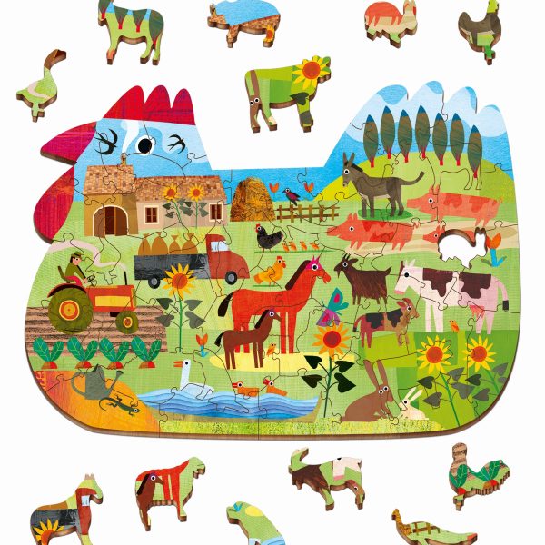 Djeco: Puzzle drewniane ZWIERZĘTA Z ŁĄKI 18m+