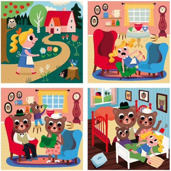 Twoje dziecko ponownie przeżyje magiczny świat klasycznej bajki o Złotowłosej, układając te cztery 9-częściowe puzzle zaprojektowane przez Ingelę P. Arrhenius!