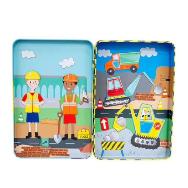 Magnetyczna układanka z motywem Dinozaurów zawiera ponad 50 zabawnych magnetycznych elementów i dwie bajecznie kolorowe scenki znajdujące się na wewnętrznych