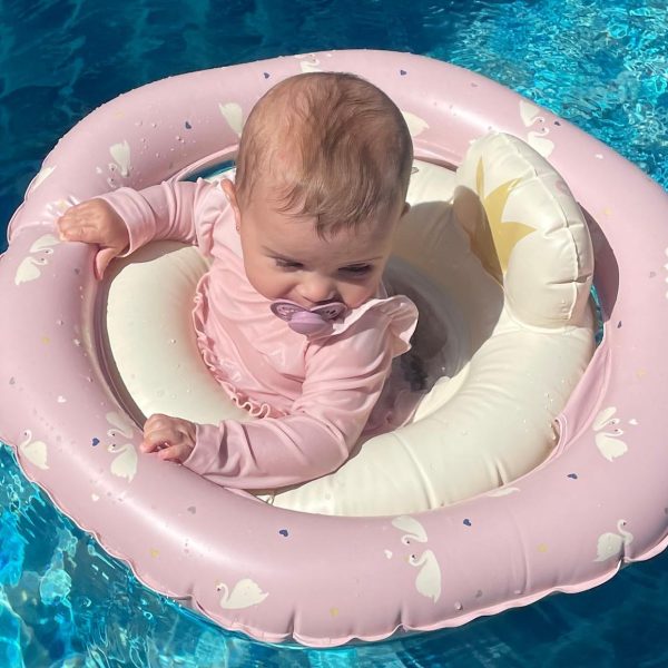 Neoprenowa kamizelka wypornościowa do pływania marki Vanilla Copenhagen dla dzieci w pięknym mleczno-kremowym kolorze w urocze pastelowe serduszka, z delikatną falbanką