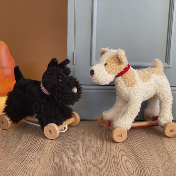 Przesympatyczny, kudłaty piesek Eliot na 4 drewnianych kółkach będzie towarzyszem podczas pierwszych spacerków Twojego dziecka. Zabawka jest bezpieczna i trwała,