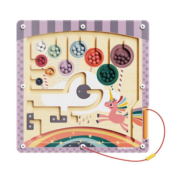 Układanka magnetyczna, która przeniesie dzieci w fantastyczny świat jednorożców. Za pomocą magnetycznego ołówka, dzieci prowadzą małe kolorowe koraliki przez cukierkowy