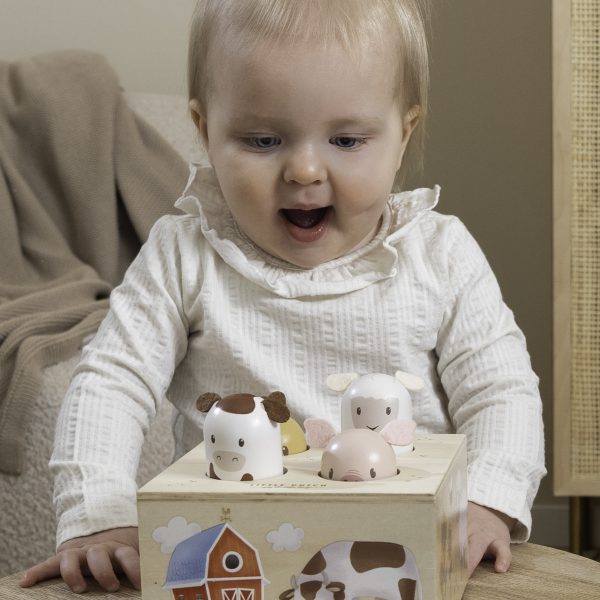 Zabawka wczesnorozwojowa ZOO to 8 dźwiękowych aktywności, które pobudzą wyobraźnię maluszków. Drewniany stolik oferuje niekończącą się zabawę z dźwiękami: „puk,
