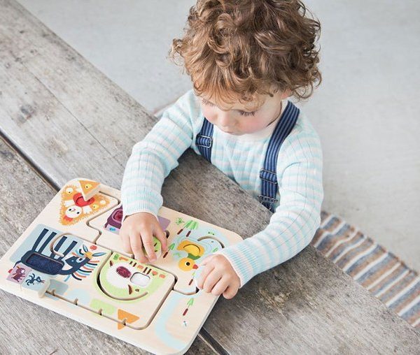 Drewniana tablica manipulacyjna z kolekcji Nosorożec Marius belgijskiej marki Lilliputiens to niebanalne wielofunkcyjne źródło rozrywki i nauki dla ciekawskich maluszków.