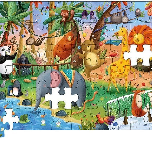Puzzle Magiczne Zoo od Auzou to doskonały pomysł na dziecięcą zabawę. Motywem przewodnim jest ogród zoologiczny, który został narysowany z